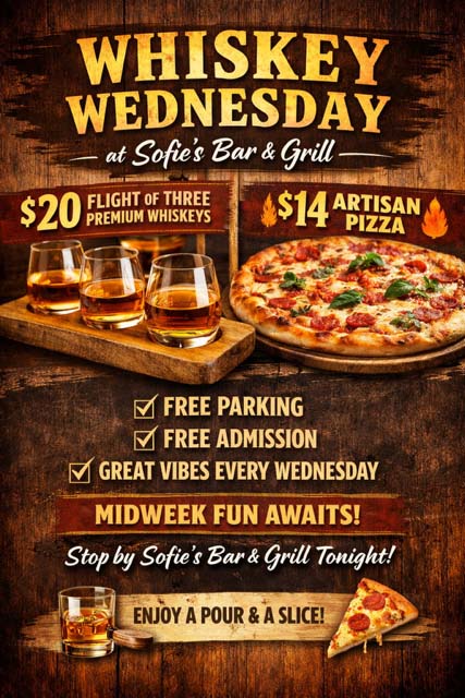 Come enjoy your favorite sporting events with our 27 big screen TVs while indulging in delectable traditional cuisines in a casual setting. We are more than just a steakhouse! Here at Sofies is where flavor meets entertainment!